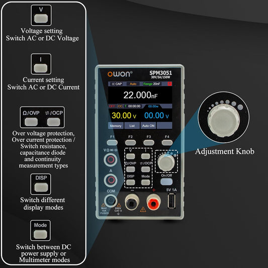 OWON SPM3051 DC Power Supply with 4 1/2 Digits Multimeter 2 in 1 Function 10mV/1mA Resolution (150W/30V/5A) 110V Input Voltage