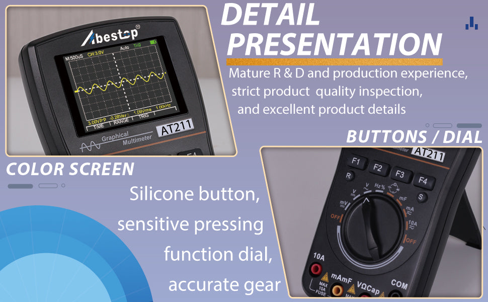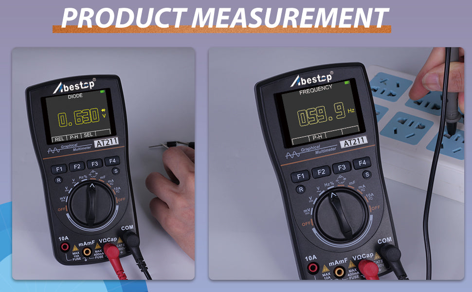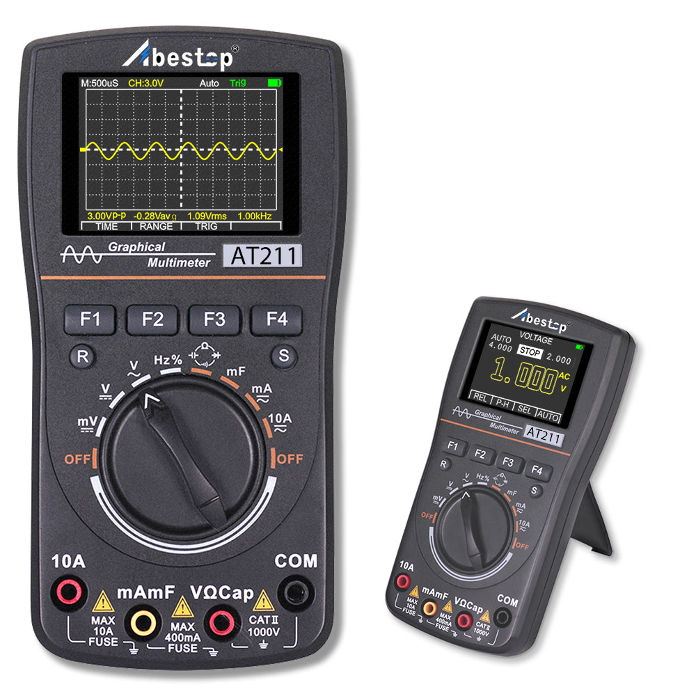- Function: 2 in 1 function, built-in scope and multimeter, multiple measurement functions, support AC/DC current/voltage, resistance, capacitance, frequency, duty cycle, diode, continuity test.Higher reliability: no adjustment of potentiometer is required for panel calibration and internal storage calibration.