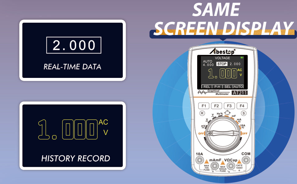 2.5Msps high-speed sampling, 1MHz analog bandwidth(Only for oscilloscopes with ACV), 4000 count digital multimeter.