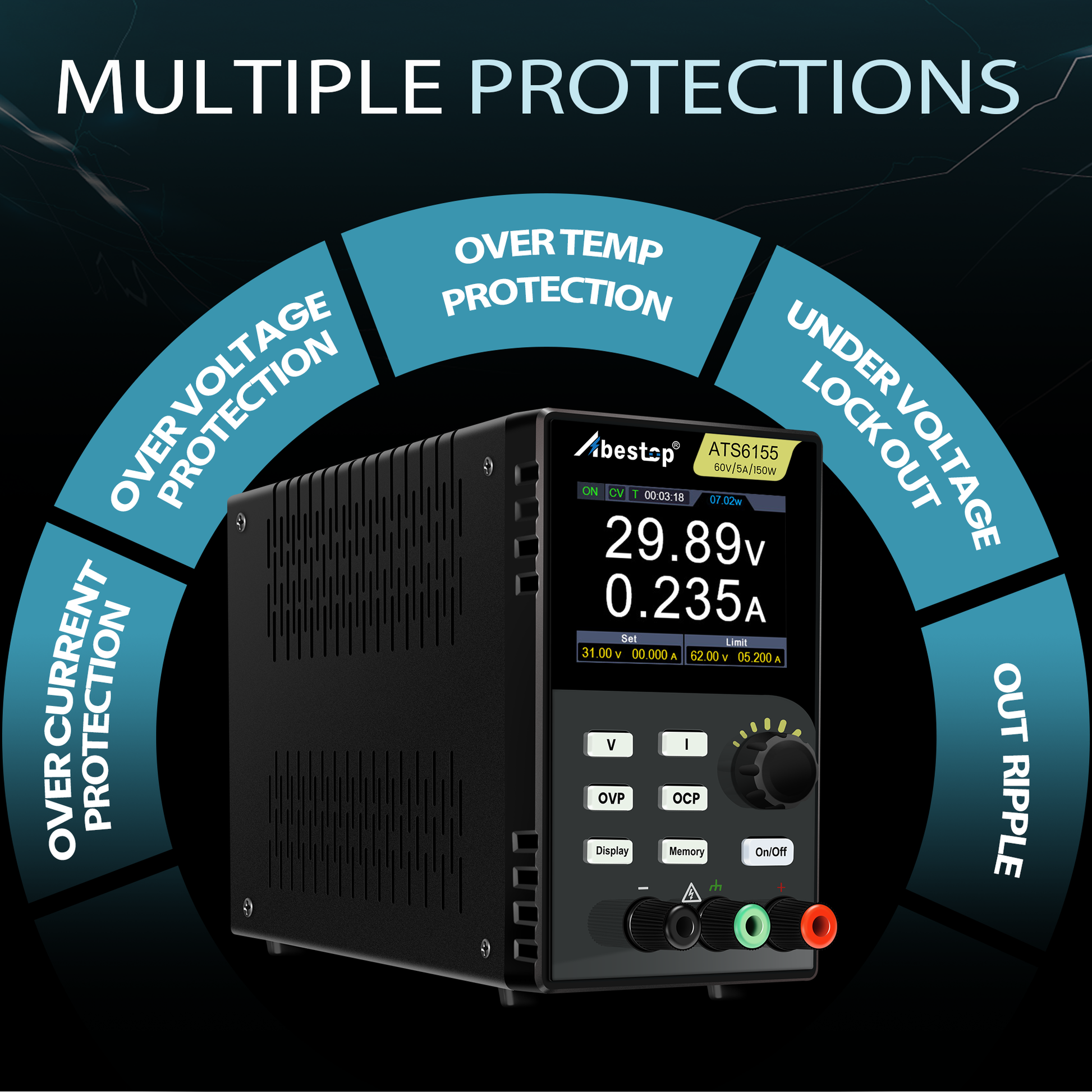 Abestop DC Power Supply 60V/5A Adjustabel Switching Bench Supply Fanless and Ultra-Silent Low Noise Programmable Power Supply (60V/5A/150W/ ATS6155)