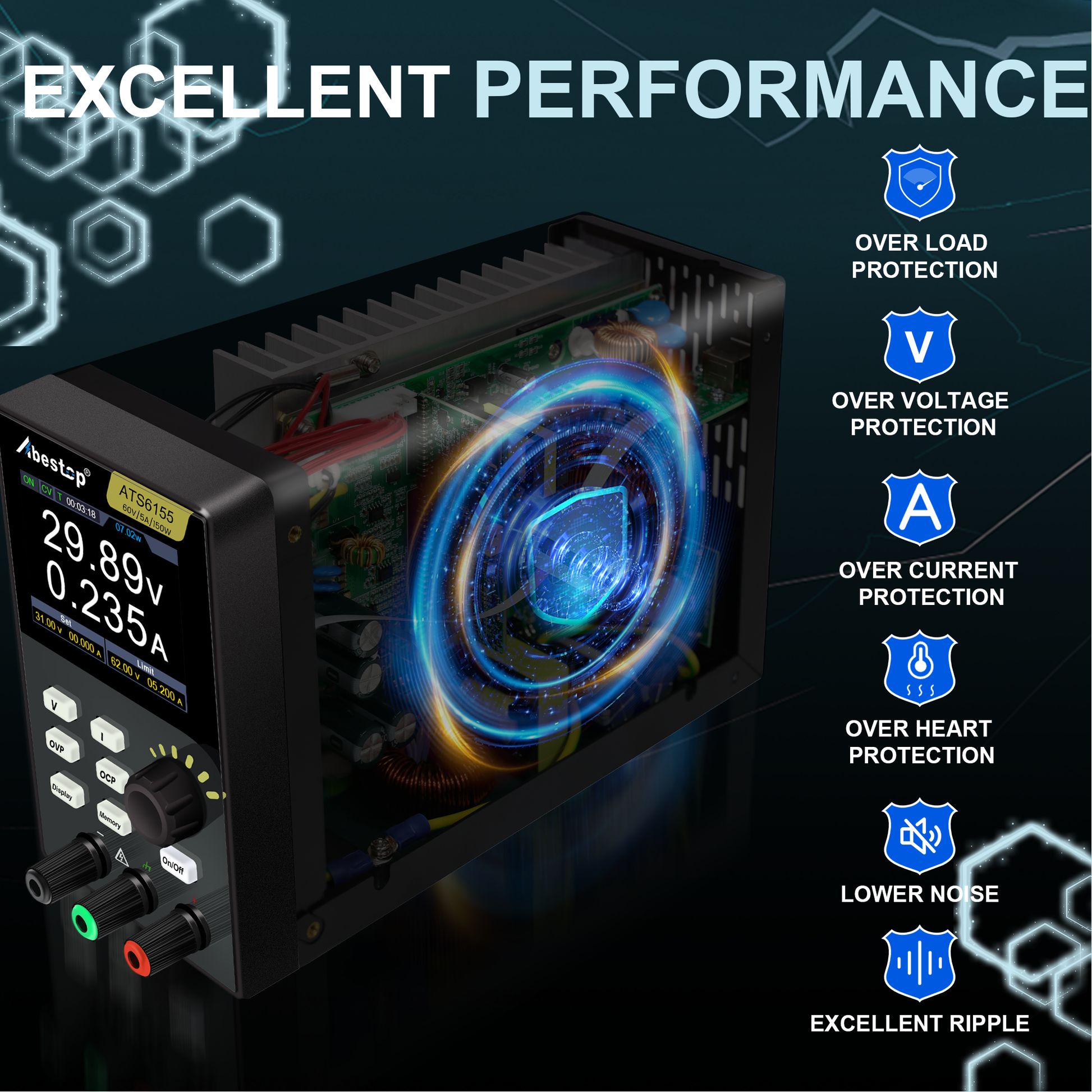 - Application: Ultra-thin, ultra-quite, ATS6155 power supply is typically used for testing electrical components, device and electronics in applications such as laboratory experiments, industrial testing, appliances, hobby and DIY projects, meet your demand