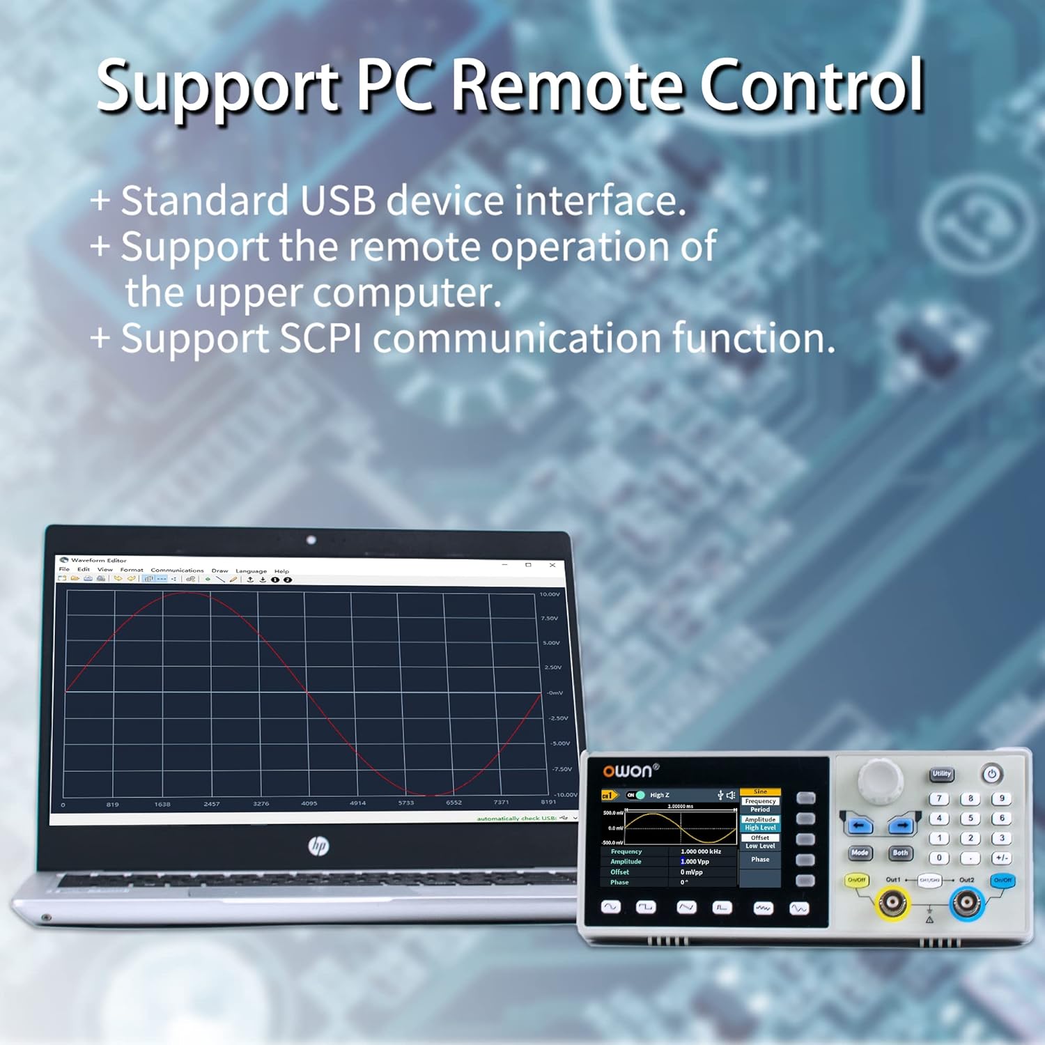 - Function: Comprehensive waveform output: 5 basic waveforms and 150 built-in arbitrary waveforms; Comprehensive modulation functions: AM, FM, PM, FSK, Sweep and Burst