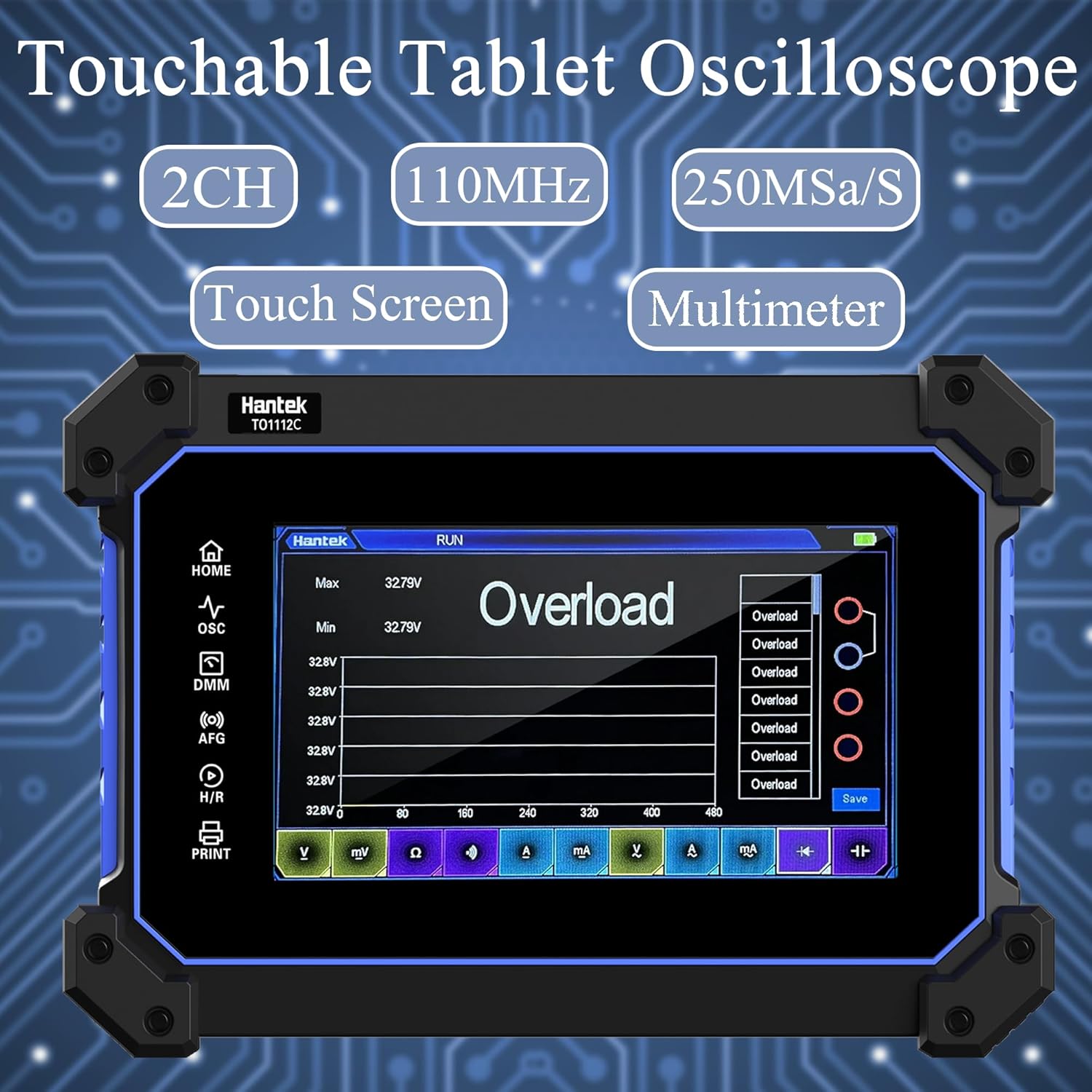 Hantek Tablet Oscilloscope 2CH Built-in Multimeter Function 8M Storage Depth with 7" TFT Touch Screen(TO1112C/110MHz Bandwidth)