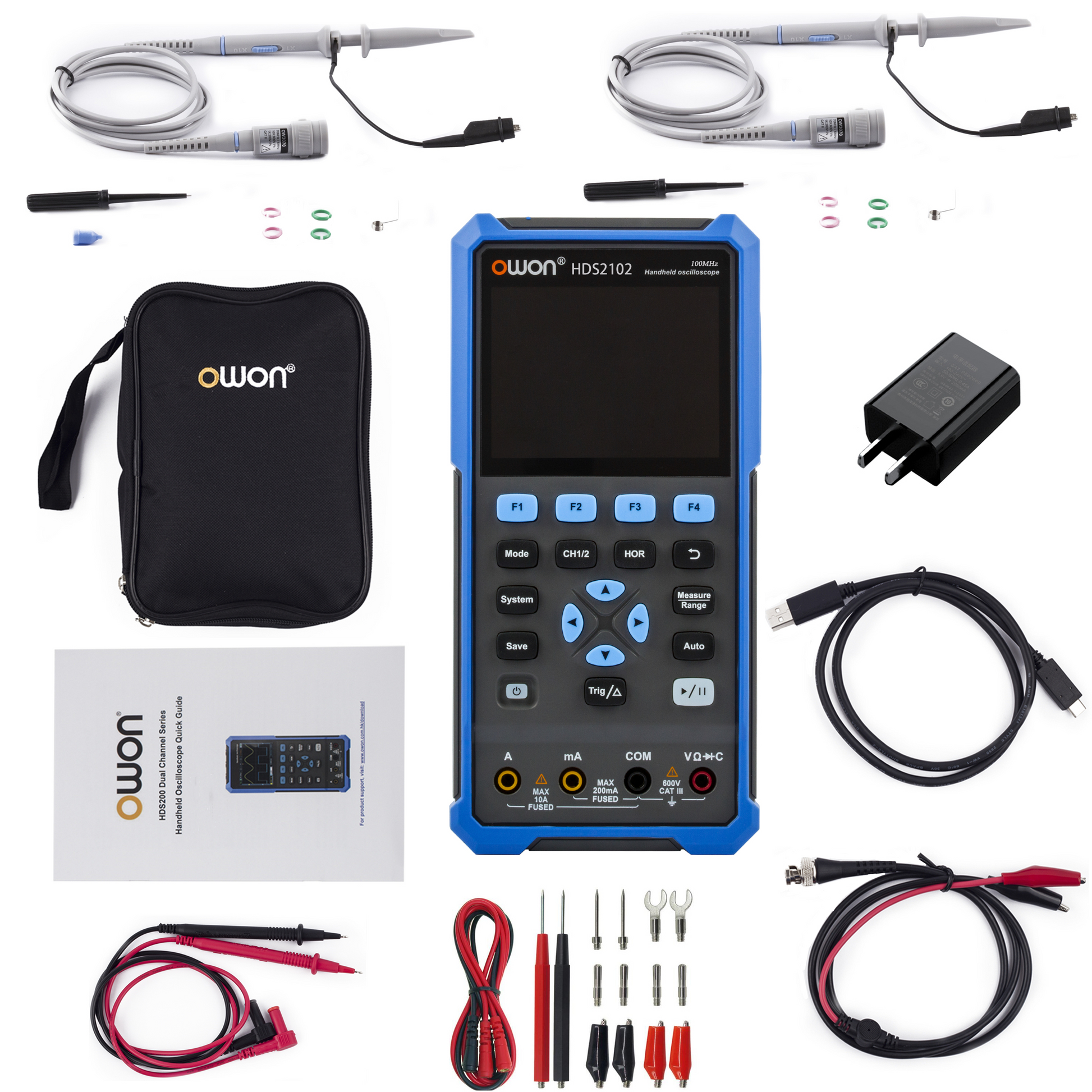 HDS2102 OWON オシロスコープ 2CH デジタルハンドヘルドオシロスコープマルチメーター 3.5 インチ LCD 100MHz 帯域幅 20000 カウントマルチメーター OSC+DMM+ 自動車メンテナンス、電力検出用