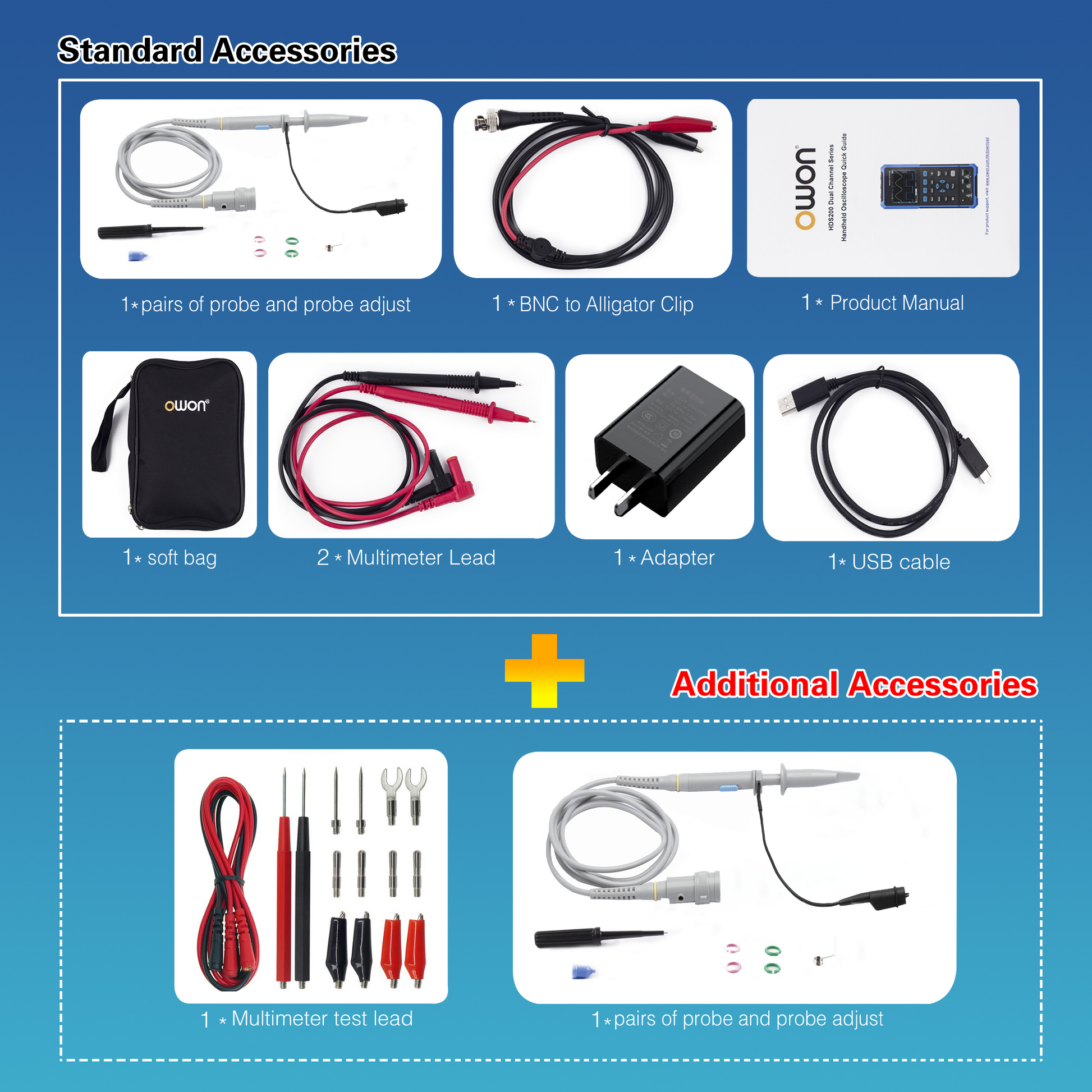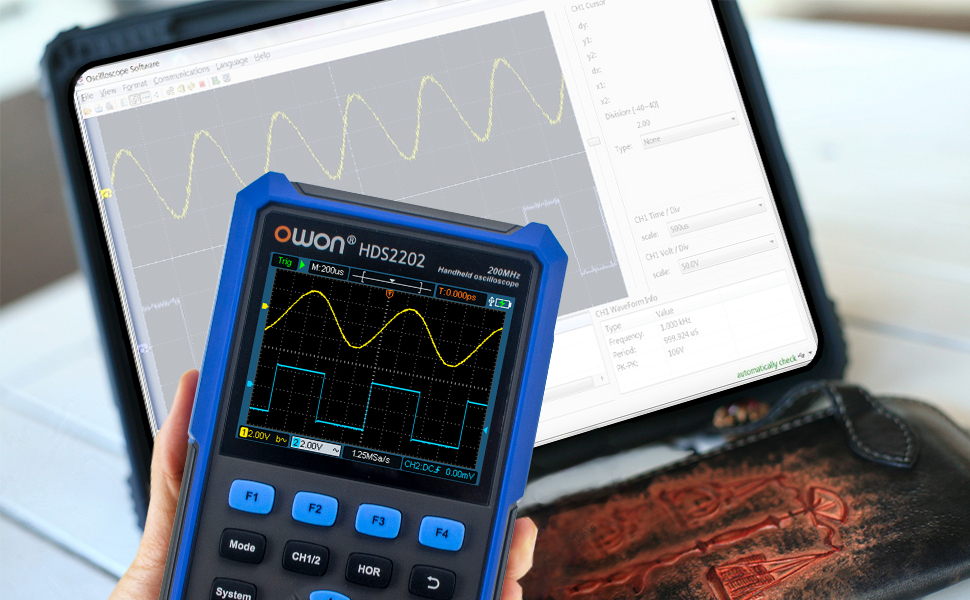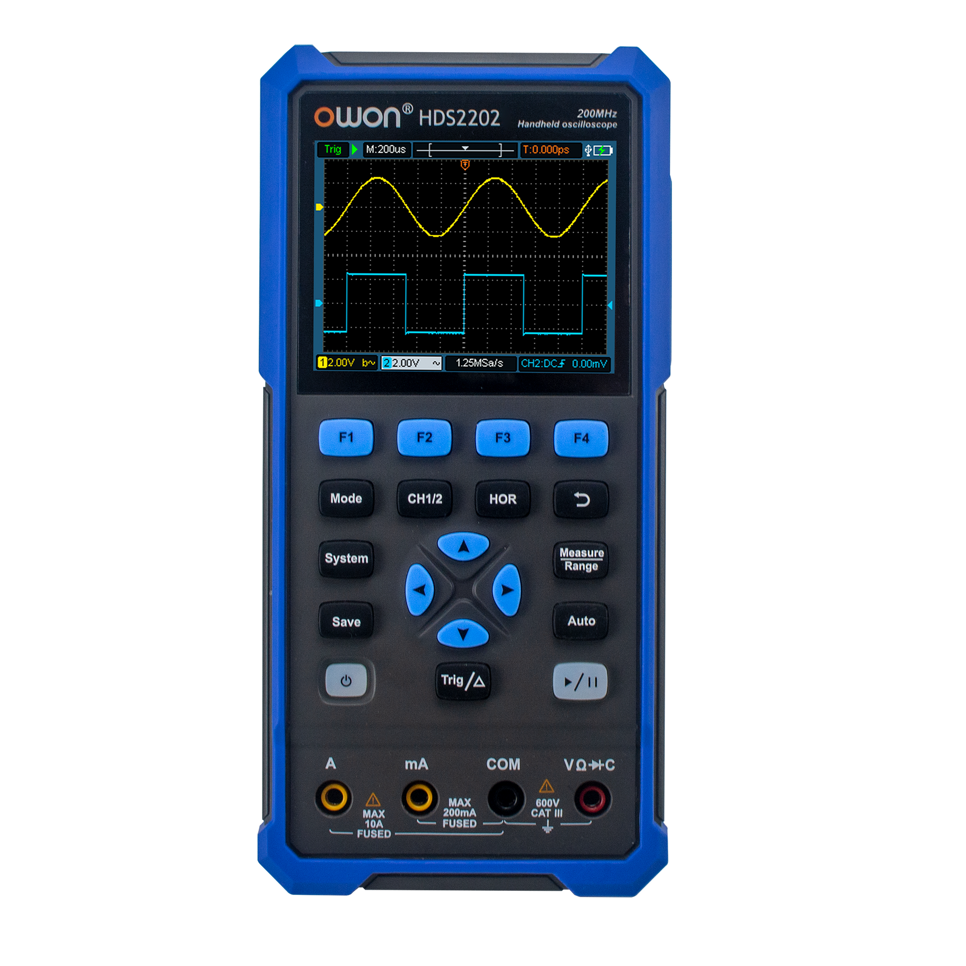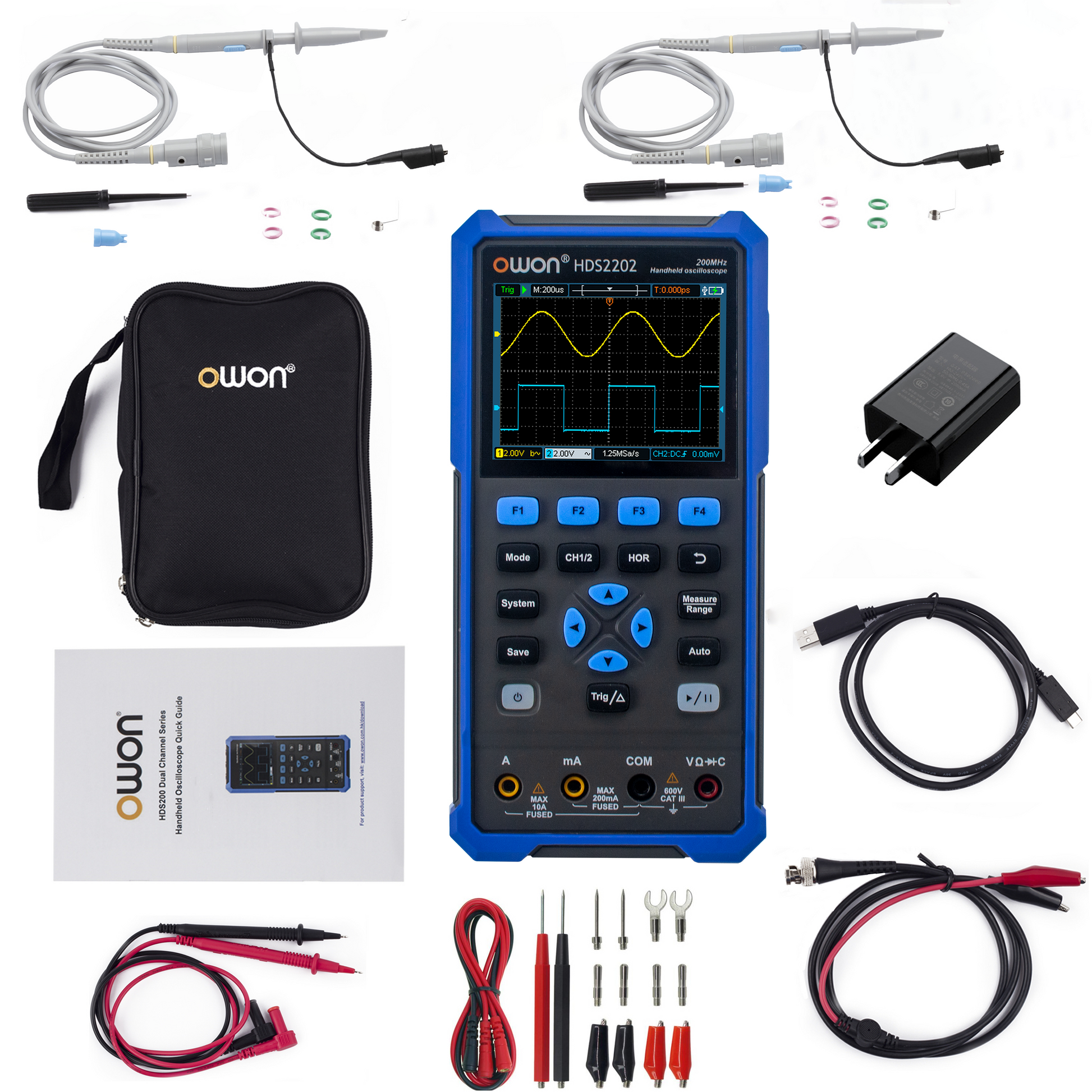 HDS2202 OWON オシロスコープ 2CH デジタルハンドヘルドオシロスコープ 200MHz 帯域幅 1GSa/s サンプリングレート 3.5 インチ LCD オシロスコープ + マルチメータ 自動車のメンテナンスおよび電源検出に使用