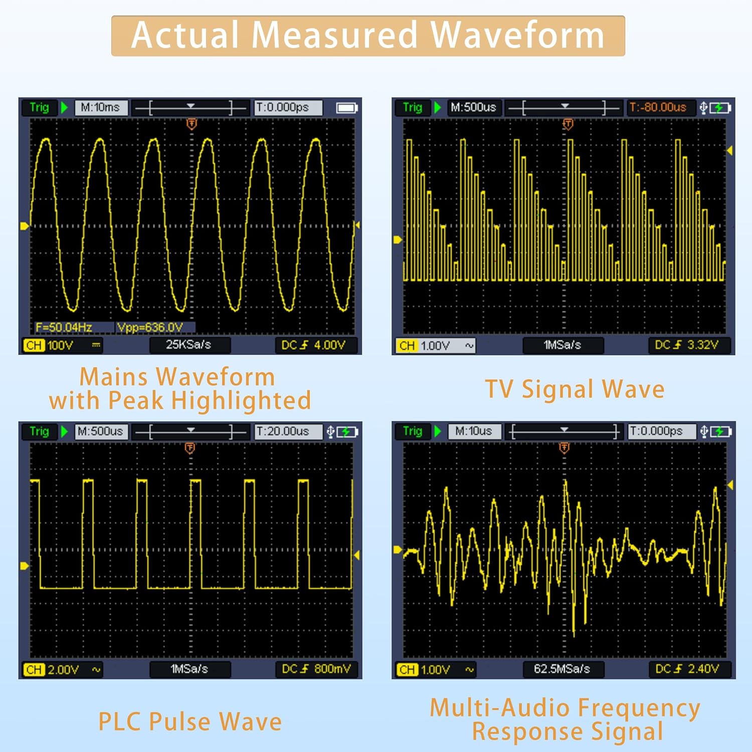 - Oscilloscopes and multimeter are independent and isolation, CAN be measured at the same time the value of electrical signals, waveforms, more convenient for your work, BUT CANNOT be displayed on a screen at the same time in the device, need to switch