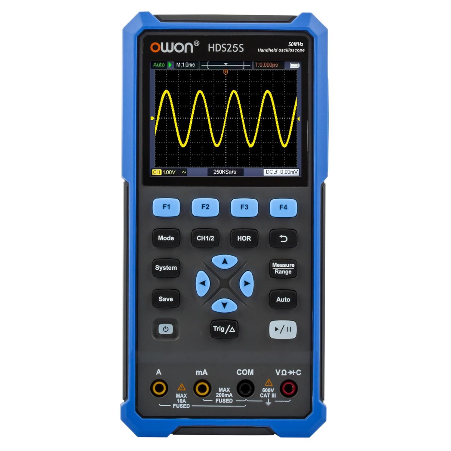 HDS25S OWON Oscilloscope 2+1 Channel Handheld 25MHz Bandwidth Digital Oscilloscope 250 MSa/s Sample Rate 10MHz Waveform Generator Digital Multimeter