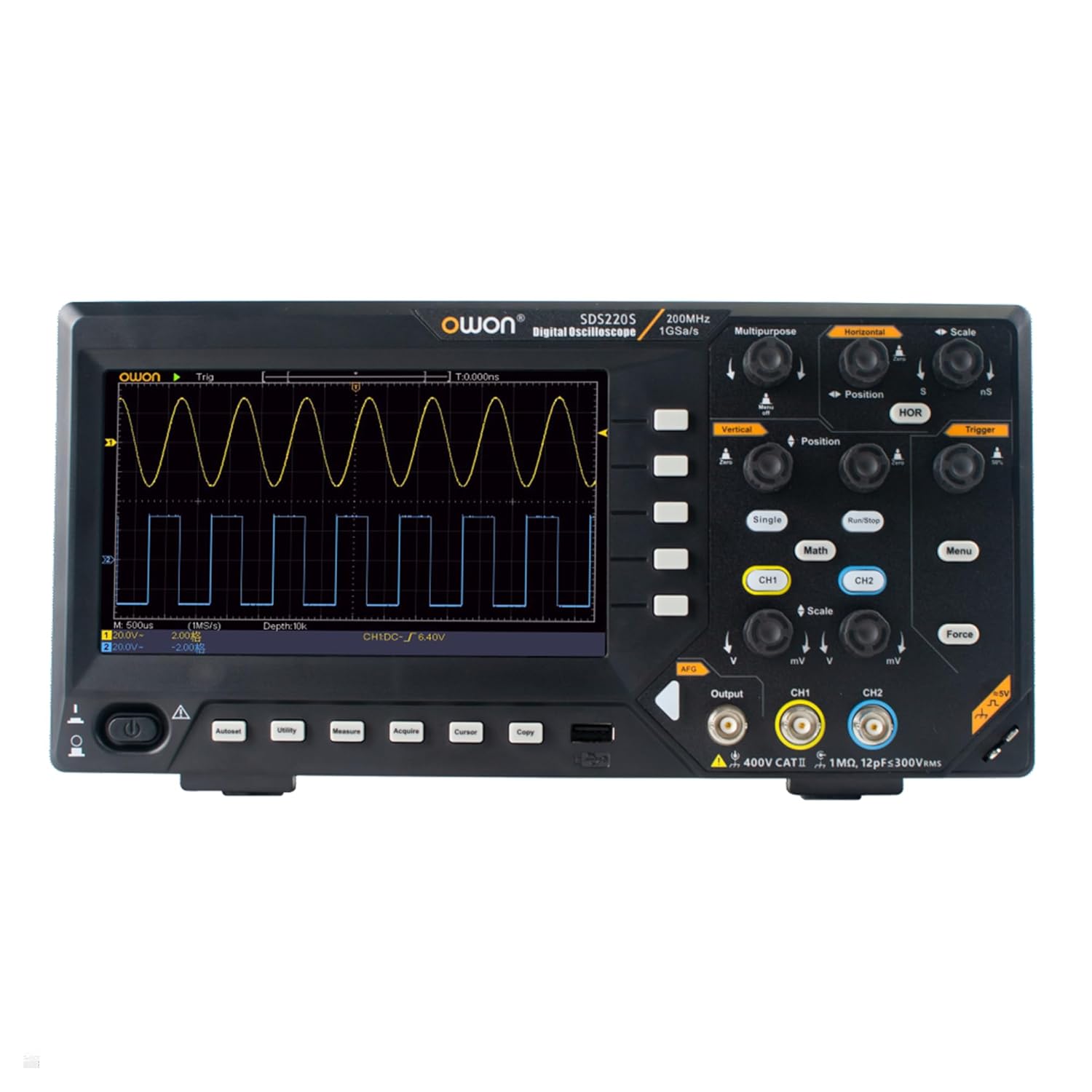 SDS220S OWON Oscilloscope 200MHz Bandwidth 2+1 Channel 3 in 1 Functions with 25MHz Waveform Generator Digital Multimeter 7” LCD Display 1GS/s Sample Rate